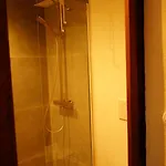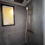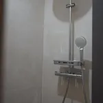 De har badrum med en separat toalett och en dusch samt hårtorkar och handdukar.